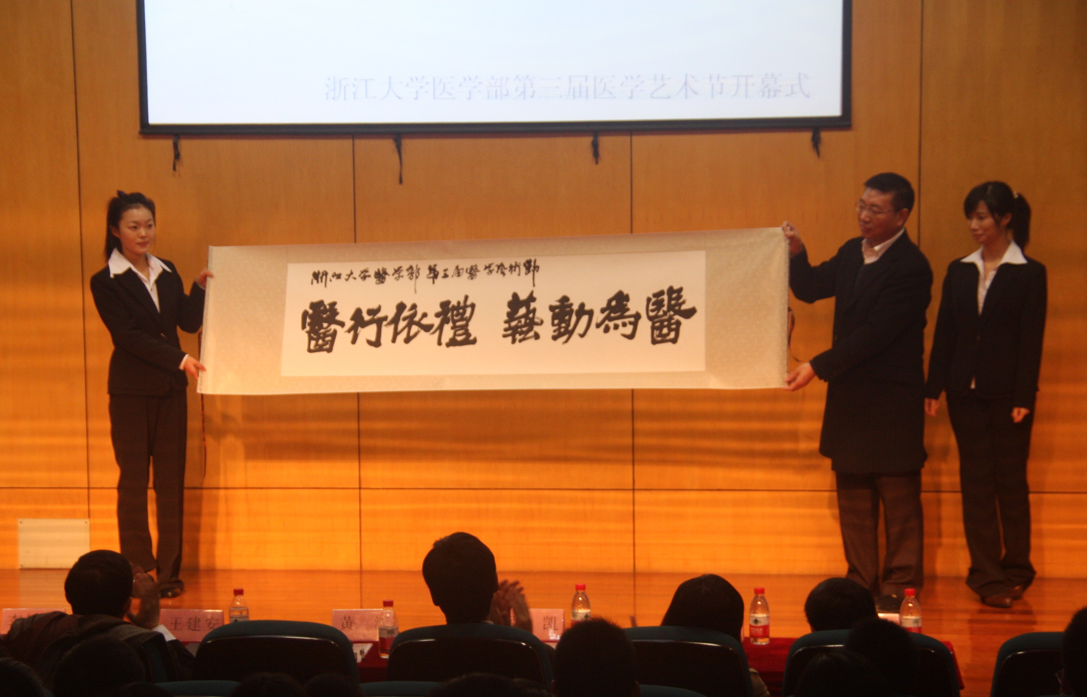 而接下来的“院长面对面”讲座,是由浙医二院院长王建安带来的题为“我眼中的好医生标准”专题报告。他卓越非凡的演讲赢得了现场观众阵阵掌声,有趣的亲身经历让我们如痴如醉。他对“爱心在行医中的重要性”的完美阐释,让我们深刻了解人文修养对于医生的重要性,更是引起了现场广大医学生的共鸣。观众踊跃提问,院长详尽解答,可谓高潮迭起。最后的赠书(《最棒医院的7堂课》)环节更是为本次开幕式画上了圆满的句点。相信即将呈现的更多活动一定能打造全新的“艺术医学、人文医学、品质医学”。