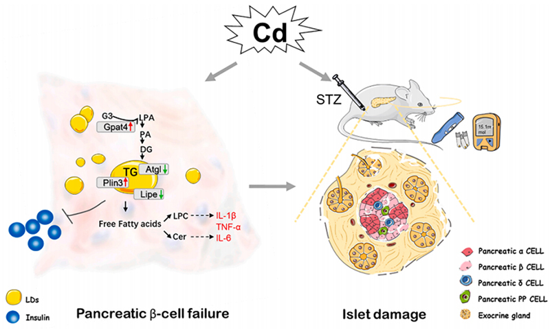 近日,浙江大学公共卫生学院周舟团队在环境科学顶尖期刊《Environment International》杂志发表了题为《Cadmium exposure impairs pancreatic β-cell function and exaggerates diabetes by disrupting lipid metabolism》的研究论文,发现镉暴露可以通过扰乱脂代谢平衡损伤胰岛β细胞并促进糖尿病发生。该研究首次揭示了镉暴露造成的胰岛β细胞损伤在糖尿病发生发展过程中的重要作用,强调了从人群水平控制镉暴露降低糖尿病发病风险的重要性。